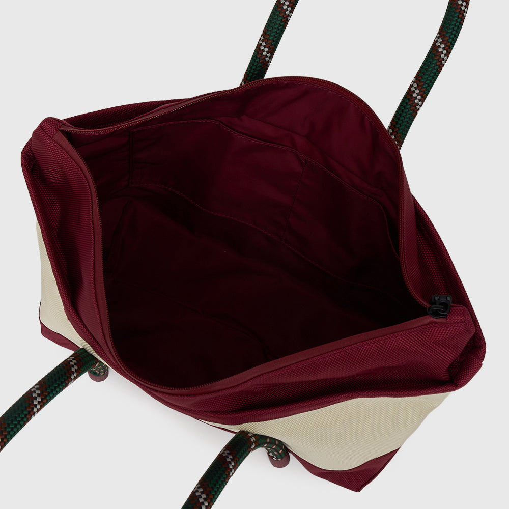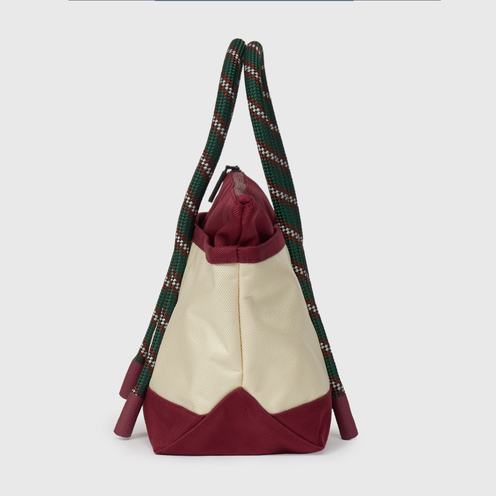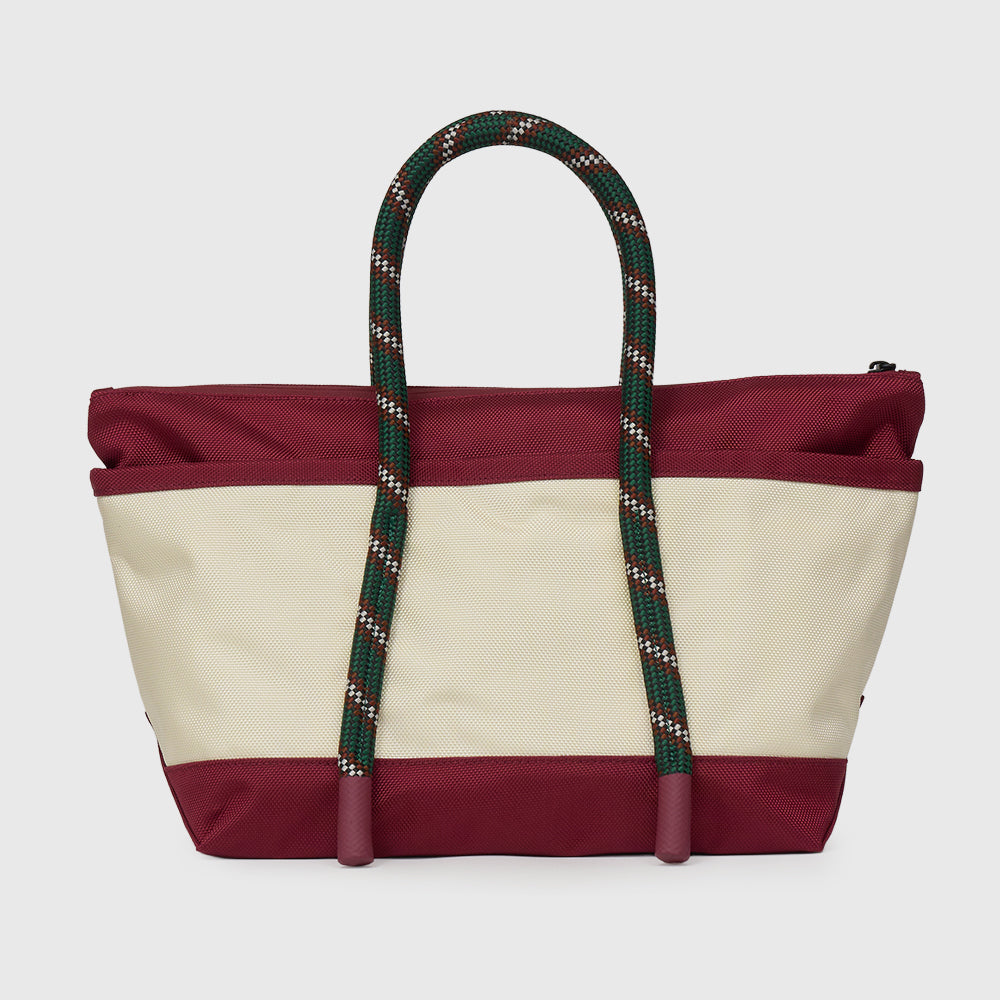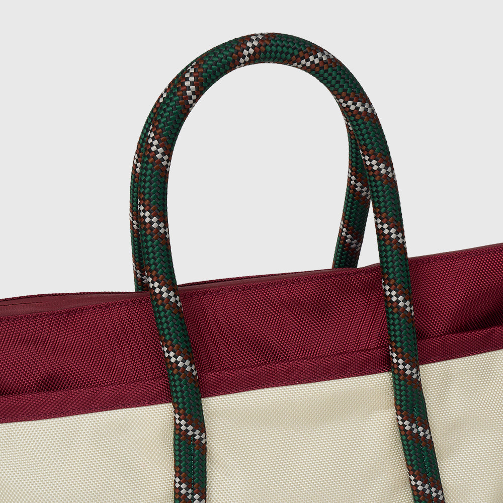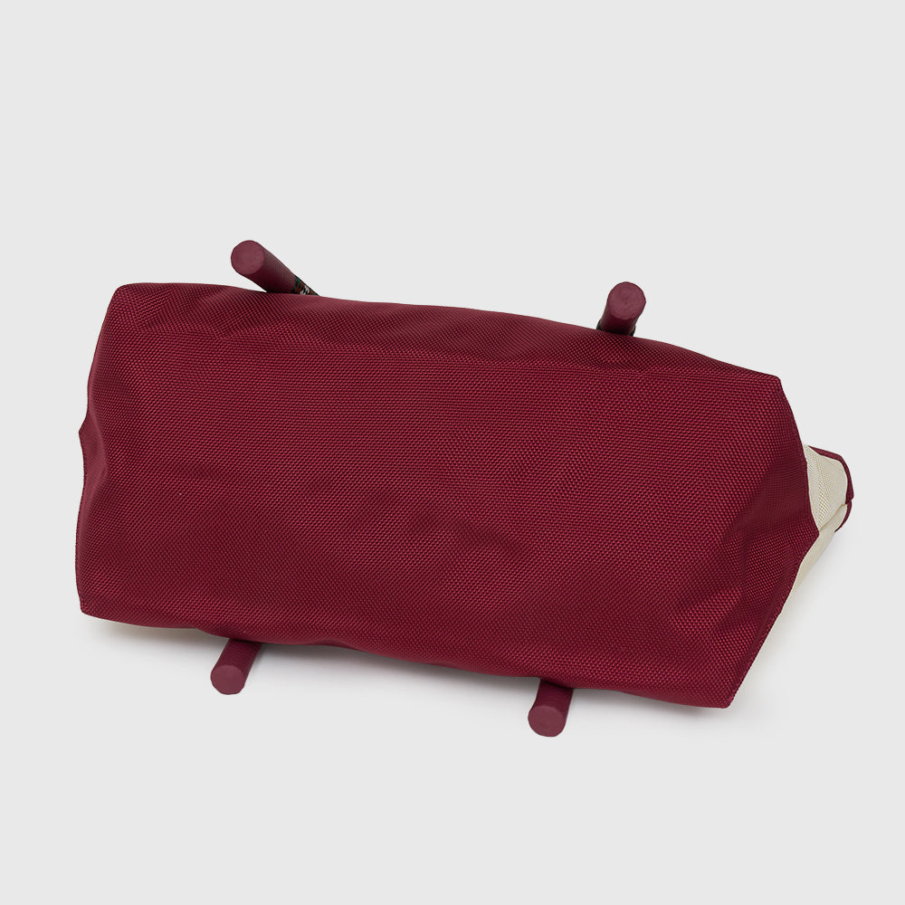 バッグの底まで続く16mm幅のロープハンドルは、先端にラバー加⼯を施すことで