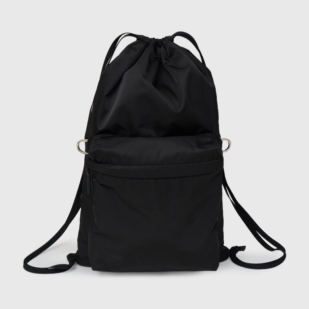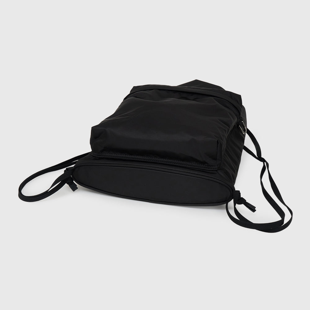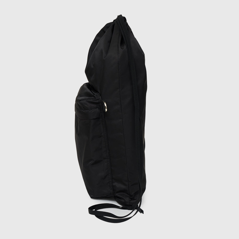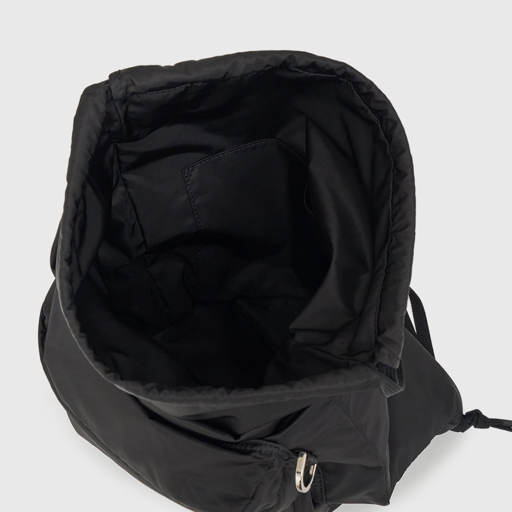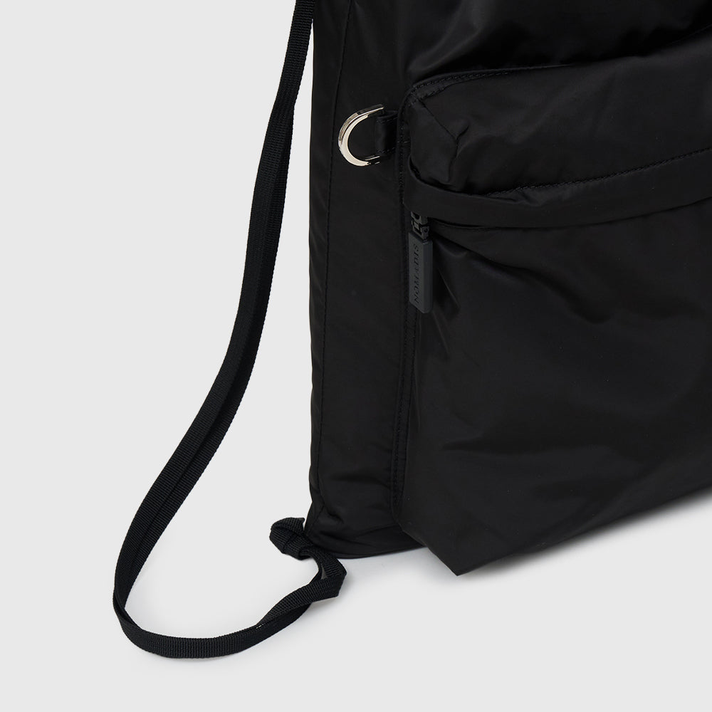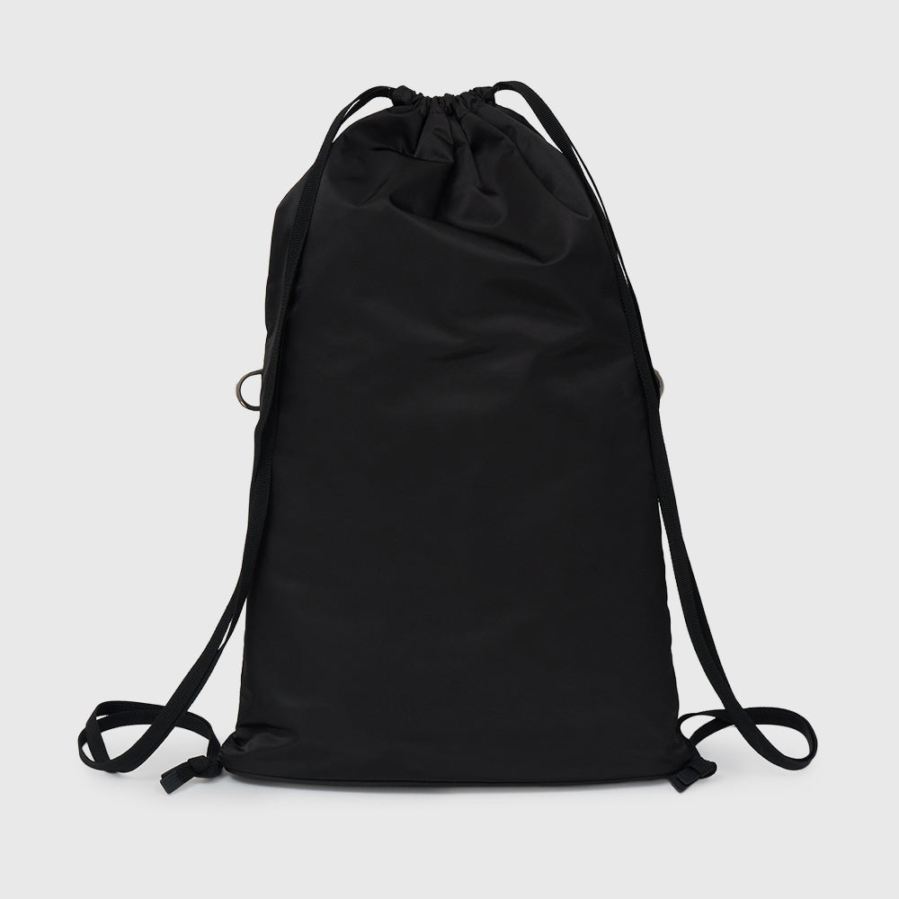 ⼀般的なナップサックにはない、細めの芯⼊りマチを設けることで、